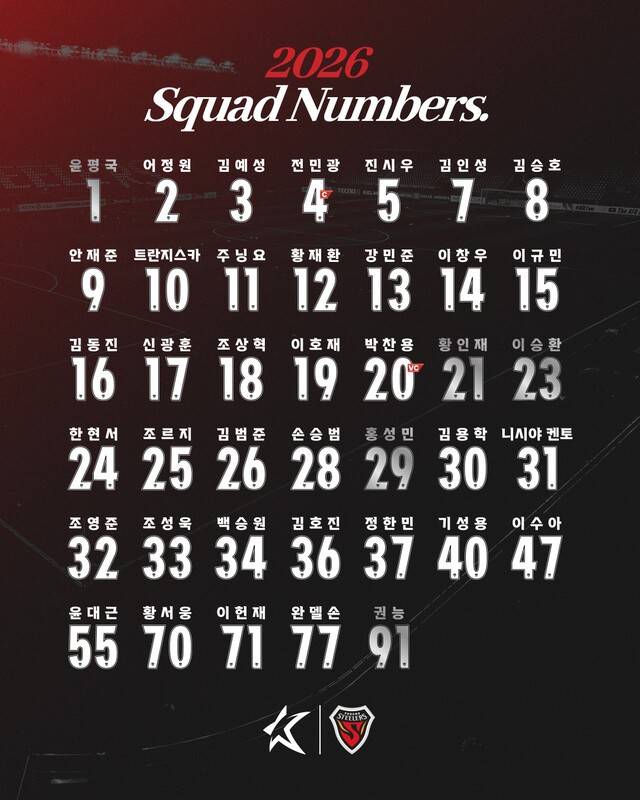 포항 스틸러스가 2026시즌 선수단 배번을 공개했다.