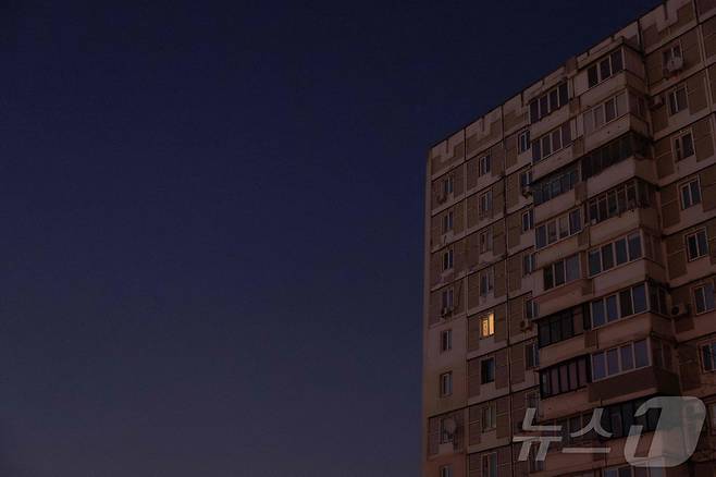 (키이우 AFP=뉴스1) 이창규 기자 = 러시아가 20일(현지시간) 우크라이나의 에너지 인프라 시설을 공습한 후 난방과 물 공급이 끊겼다. 키이우의 주거용 건물 창문에 실내 불이 켜진 모습이 보인다. 2025.1.21./뉴스1