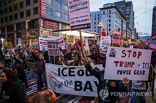Attendees march during San Francisco Free America Walkout, an anti-ICE protest and a call to end the war on Venezuela, Tuesday, Jan. 20, 2026, in San Francisco. (Yalonda M. James/San Francisco Chronicle via AP) MANDATORY CREDIT: PHOTOGRAPHER AND SAN FRANCISCO CHRONICLE; SAN JOSE MERCURY NEWS OUT; EAST BAY TIMES OUT; MARIN INDEPENDENT JOURNAL OUT; SAN FRANCISCO EXAMINER OUT