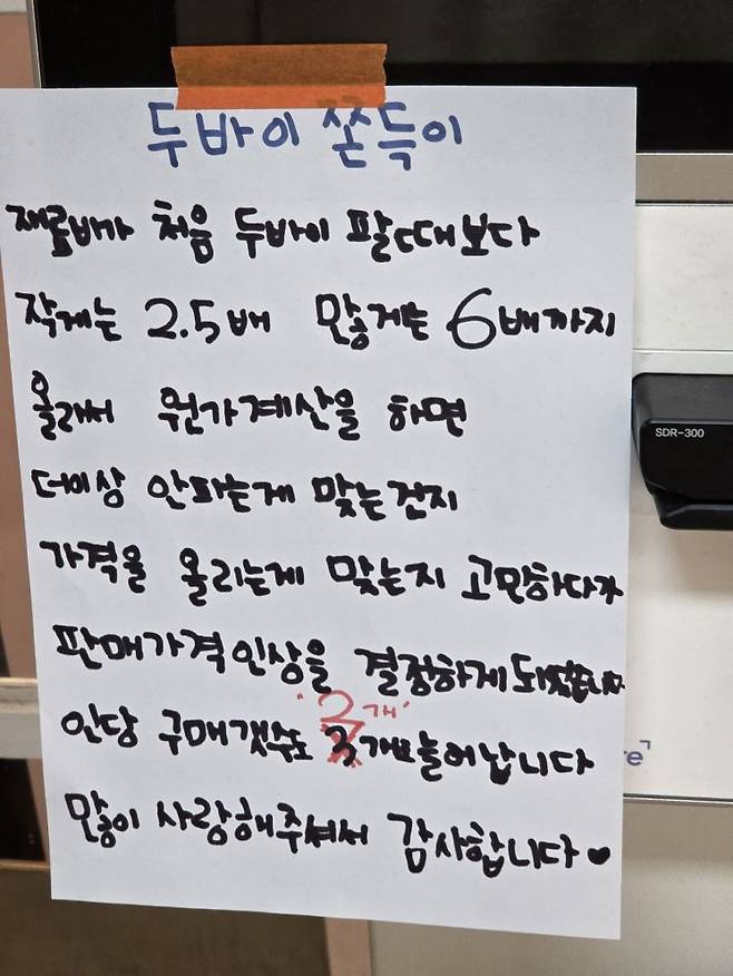 문제는 국내외 큰손들의 등장으로 두쫀쿠 가격이 더 오를 여지가 남았다는 점이다. 대형 프랜차이즈인 파리바게뜨, 투썸플레이스 등이 연이어 두바이 초콜릿 신제품 출시 소식을 알렸고, 수만 가맹점을 보유한 편의점 빅3도 줄줄이 합류했다. K-웨이브를 타고 중국에서도 두쫀쿠가 인기를 얻을 조짐이라 자영업자들은 불안함 속 원재료 사들이기에 나서는 모양새다.