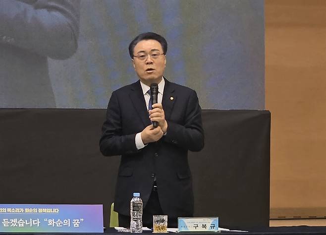 구 군수는 21일 화순어울림센터에서 열린 화순읍 주민과의 대화에서 신상발언을 통해 "오는 6월 화순군수 선거에 출마하지 않겠다"는 입장을 밝혔다.