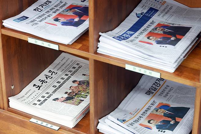 | ▲ 지난 7일 국회도서관에 북한 노동당 기관지 노동신문이 비치돼 있다. 국회도서관 관계자는 지난 5일 오후부터 노동신문을 비치했다고 설명했다. |
