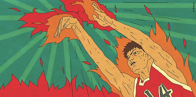 “오케이… 하지만 오늘의 정대만은 최상이다, 산왕.” 만화 <슬램덩크>에서 가드 정대만은 산왕공고와의 경기 초반에 3점 슛을 성공시킨 뒤 손목을 가볍게 풀며 중얼거린다. 이날 ‘손끝에 불이 붙은’ 정대만은 3점 슛을 8개나 넣으며 팀을 승리로 이끌었다. 농구 팬이라면 누구나 알지만, 어떤 선수가 가끔 ‘그분이 오시거나’ ‘슛발이 받는’ 날을 맞으면 득점포를 미친 듯이 터뜨리곤 한다. 오늘 뜨겁게 불타오르는 선수에게 패스를 몰아주라고 팬들은 자기 팀 선수들에게 난리다. 이처럼 슛을 연거푸 성공시킨 농구선수는 다음번 시도에도 성공할 확률이 더 높다고 믿는 것을 ‘뜨거운 손(Hot hand)’ 현상이라 한다.