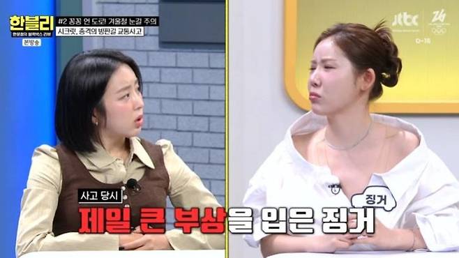 당시 갈비뼈 골절이 있었다던 징거는 "크게 다쳐서 기억이 아예 없다"라고 말했다. 전효성은 "처음으로 죽음의 공포를 느꼈다"라고 털어놨다. 징거는 "그 이후로 운전을 못하겠다"라며 여전한 트라우마를 고백했다.