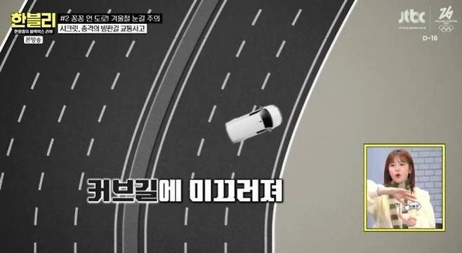 제보자는 "눈이 많이 오는 밤이었다. 새벽에는 빙판길이었고 제설이 되지 않은 상태였다. 출근을 하면서 지하 차도를 빠져나가는데 헤드 라이트가 시야에 꽂혔다. 일단 급브레이크를 밟았는데 빙판길에 미끄러지더라. 사이드 브레이크를 당기는 순간 차가 급격하게 회전하며 시설물과 충돌 후 정차했다"라며 당시를 회상했다.