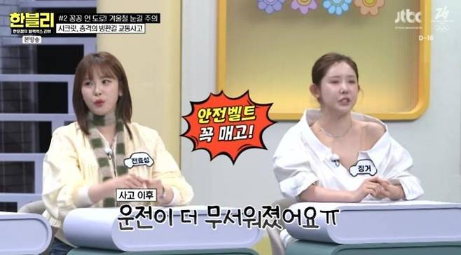 21일 방송된 JTBC 예능 프로그램 '한문철의 블랙박스 리뷰'에는 시크릿 멤버 전효성과 징거가 게스트로 출연했다.