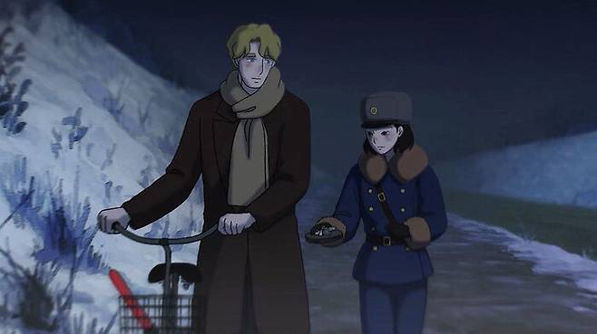 [김보솔/애니메이션 감독 : 애니메이션 '광장'은 이제 스웨덴 서기관 이삭 모리라는 인물이 북한의 내국인인 서복주라는 여성을 남몰래 만나고 있었다는 설정으로 영화가 시작이 되고 보리가 조금 있으면 스웨덴으로 다시 돌아가야 하는 상황인 겁니다. 그래서 이 둘의 만남의 시간에 유통기한이 있는 거죠. 보리는 어떻게 행동을 할 것이고 그리고 둘의 관계를 알지만 모른 척하고 있었던 주변의 어떤 한 인물, 이 세 인물이 주된 중심축으로 나오는 이야기입니다.]