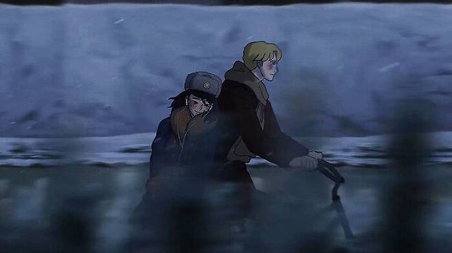 [김보솔/애니메이션 감독 : 제가 영화 공부를 할 때 한 9년 전에 읽었던 기사에서부터 비롯됐는데요. 실제 스웨덴 서기관이 평양에서 3년간 근무를 하다가 남한에 들어왔을 때에 한 인터뷰 기사 내용이었어요. '북한에서의 생활이 어떠셨어요?'라는 질문에 그 서기관이 '너무 고독하고 외로웠다.'라는 대답부터 북한에 있는 생활상을 보여주셨는데, 이렇게 쭉 인터뷰를 해 주셨는데, 기억에 남았던 거는 아무도 없는 고독한 평양 안에서 자신이 그 외로움과 고독함을 달래기 위해서 했던 유일한 해소 방법이 차량이 없는 고속도로에 나가서 자기 혼자 자전거를 타는 게 유일한 스트레스 해소 방법이었다. 그런데 그 기사의 그 구절을 읽는데 너무 이미지가 머릿속에 선명하게 그려졌고, 제가 평소에 북한에 대해서 관심을 갖고 있었던 것이 그 이미지 한 장이 트리거가 되면서, '영화를 만들어야겠다'라고 생각하면서 만들게 됐습니다. ]