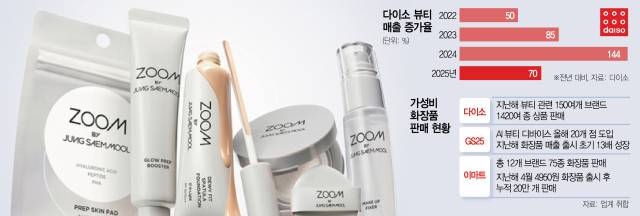 생활용품 전문점 다이소가 유명 메이크업 아티스트 정샘물 원장과 협업해 선보인 가성비 화장품이 연초부터 인기몰이를 하고 있다. 편의점, 대형마트들도 신규 고객 유치 및 매출 확대를 위해 초저가 화장품을 잇따라 선보이면서 유통업계 간 경쟁이 치열해질 전망이다.