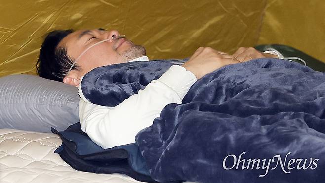| ▲ 단식 농성 8일차 맞은 장동혁 대표 통일교·공천헌금 '쌍특검' 수용을 요구하며 단식 8일차를 맞은 장동혁 국민의힘 대표가 22일 국회 로텐더홀 단식 농성 텐트에 누워 있다. |