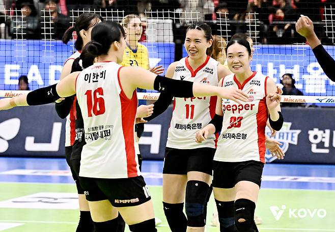 이 승리로 9승 15패, 승점 27점을 거둔 페퍼저축은행은 리그 6위에 뿌리를 박았다. 5위 GS칼텍스(11승12패, 승점 33점)와는 6점 차다. 최하위 정관장(6승 18패, 승점 18점)과는 승점이 9점 차나 난다.