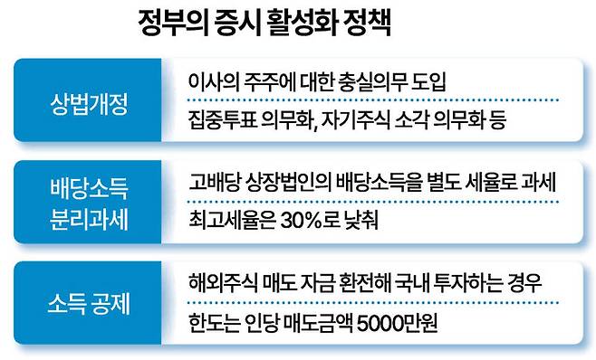 정부는 출범 이후 상법 개정, 배당소득 분리과세, 해외투자 복귀 세제 지원 등 연이어 증시 활성화 정책을 쏟아내면서 국내 증시를 ‘제값 받는 시장’으로 탈바꿈시키는 데 집중했다.