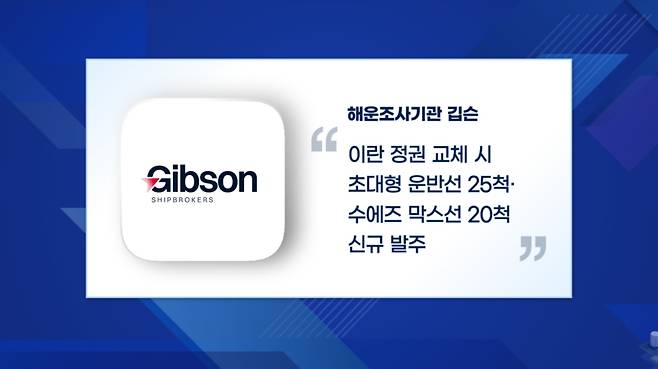 해운조사기관에 따르면 이란 정권이 바뀔 경우 초대형 원유 운반선 25척, 수에즈막스급 원유 운반선 20척을 신규 발주할 것으로 예상됩니다.