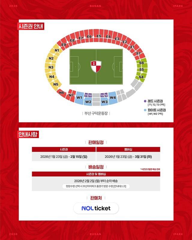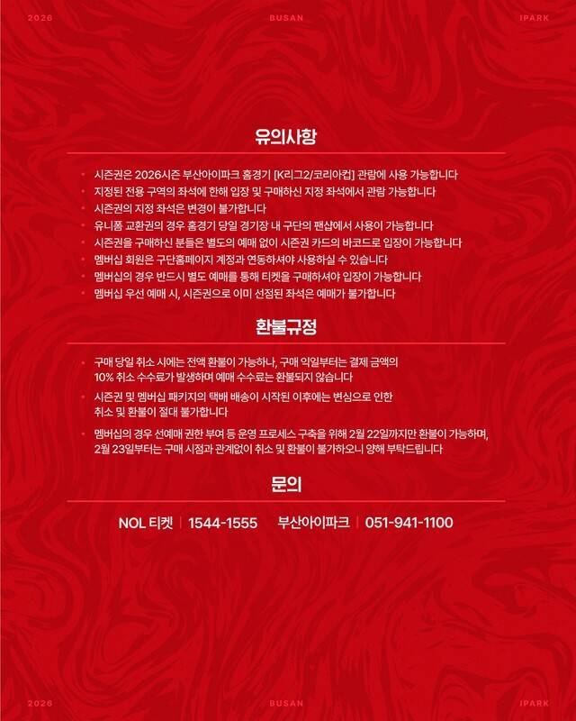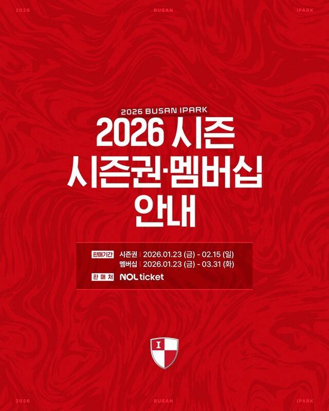 한편, 부산은 오는 23일(금)부터 시즌권·멤버십을 판매할 예정이며, 자세한 내용은 부산 아이파크 공식 홈페이지와 놀(NOL) 티켓 홈페이지를 통해 확