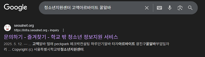 가령 구글에서 '청소년지원센터 고액 꿀알바' 등의 키워드로 검색하면 서울시 공공기관 문의게시판에 올라와 있는 불법 의심 광고가 검색되는 식입니다. 해시태그도 키워드로 포함될 만한 여러 단어들을 나열해 검색 포털에 노출되기 쉽게 만든 점도 특징입니다.