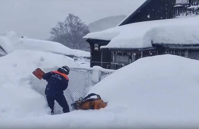 | ▲ 실제 러시아 캄차카 반도 폭설 사진. 2026년 1월 20일 러시아 캄차카 지방 페트로파블롭스크-캄차츠키에서 폭설 속에서 구조 활동을 펼치는 러시아 응급 구조대원들 모습(EPA/러시아 캄차카 지방 비상사태부 제공) |