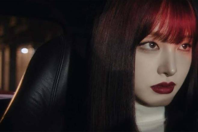 이번 공개된 영상은 칠흑 같은 어둠이 내려앉은 골목길에 정차된 레드 컬러의 차량이 처음 등장하며 긴장감을 높인다. 차 안에서 강렬한 붉은 조명을 맞으며 어딘가를 응시하는 리즈의 모습은 서늘하면서도 치명적인 분위기를 연출한다. 특히 리즈의 짙은 레드 립과 몽환적으로 흩어지는 미소는 시각적 대비를 이루어 몰입도를 끌어올린다.
