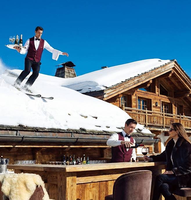 최근 몇 년 새 아프레 스키 문화가 서구권에서 다시 주목받는 이유도 분명하다. ‘더 빨리, 더 효율적으로’를 요구하는 현대사회에서 역설적으로 ‘아무것도 하지 않는 시간’을 능동적으로 선택하는 방식이어서다. 국내 스키장들이 여전히 슬로프 위 시간에 집중하는 사이, 해외 유명 스키 플레이스들은 슬로프 밖의 공간을 확장해왔다. 하강 동선 곳곳엔 테라스와 바, 선베드, 음악과 벽난로가 자연스럽게 어우러진다. 스키 부츠를 신은 채 미끄러져 들어서는 숙소는 그저 낙원이다.