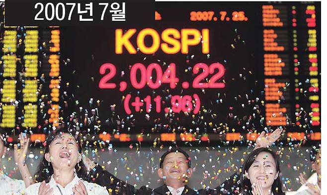 코스피가 걸어온 길 국내 대표 주가지수인 코스피는 1989년 3월31일 최초로 1000을 돌파하며 ‘네 자릿수 지수’ 시대를 열었지만, 1997년 외환위기로 폭락했다. 이후 1999년 다시 1000선을 회복한 뒤 펀드 투자 열풍(2007년)과 코로나19 호황기(2021년), 반도체 슈퍼사이클(2025년)을 거치며 마디 지수를 갈아치워 왔다. 코스피 지수는 지난해 10월27일 4000선을 돌파한 지 3개월여 만인 22일 장중 5000선 고지를 처음 밟았다. 연합뉴스