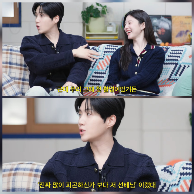 김선호는 “첫 촬영이었는데 말을 더듬고 있으니까 윤정이가 ‘진짜 많이 피곤하신가 보다’라며 챙겨줬다”며 “정관장까지 먹고 다시 정신 차렸다”고 웃으며 당시를 회상했다. 이에 유병재는 “거짓말하지 마”라며 믿지 못하겠다는 반응을 보였고, 고윤정 역시 “진짜였다”고 증언해 웃음을 더했다.