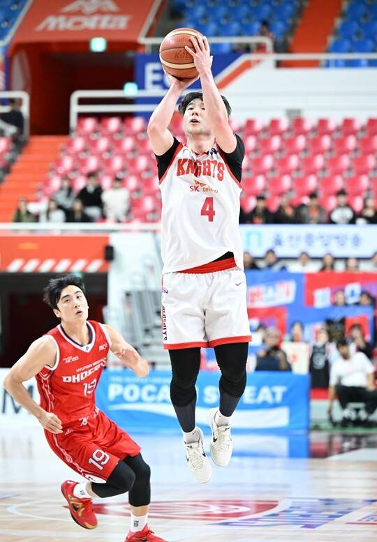 김낙현은 3쿼터 종료 3분 42초 전 벤치로 물러났다. SK의 의도는 ‘수비 강화’였다. SK는 의도대로 경기를 했다. 60-56으로 3쿼터를 종료. 주도권을 유지한 채, 마지막 10분을 맞았다.