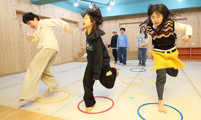 22일 서울 강동구 고덕동 돋움지역아동센터에서 겨울방학을 맞은 초등학생들이 신체놀이활동을 하고 있다.