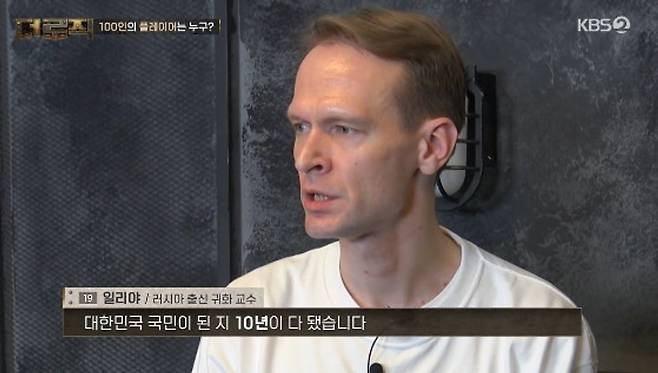 러시아 출신 방송인 겸 교수 일리야는 ”귀화를 해서 대한민국 국민이 된지 10년이 다 됐다. 현재는 대학교에서 수업을 하고 또 방송을 하고 있다“라고 자신을 소개했다.