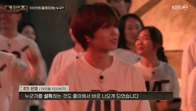 또 다른 아이돌 멤버 유나이트 은호는 “말하는 거를 좋아하기도 하고 누군가를 설득하는 거를 좋아해서 나오게 됐다”라고 말했다. 김태헌은 “제국의 아이들로 활동했고 지금은 솔로로 열심히 활동을 준비하고 있다”라고 자신을 소개했다. 이외에도 가수 플레이어로 버클리 음대 장학생이자 엑스디너리 히어로즈 멤버인 건일 역시 참가했다.