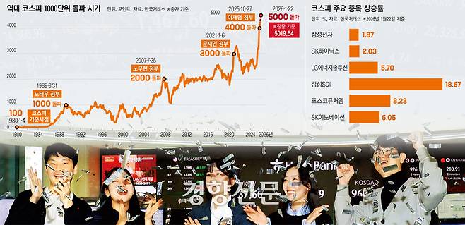 정부도 이날 코스피 지수 5000 달성이 부의 효과로 이어질 것으로 내다봤다. 재정경제부 관계자는 “코스피 5000 달성도 (소비 증가에) 긍정적인 영향을 미칠 것”이라고 말했다.