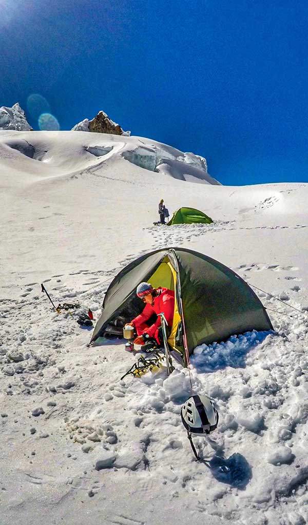 페루에서 등반을 하려고 하이캠프(빙하지대)에서 잠을 잔 날이었다. 이머전시 블랭킷에 발포매트만 깔고 누우니 반소매, 긴소매, 다운재킷, 방풍재킷까지 있는 의류를 다 껴입었는데도 바닥 냉기 때문에 잠을 잘 수 없었다. 빙하 위에서의 야영이 처음이었으니 준비가 부족했다.