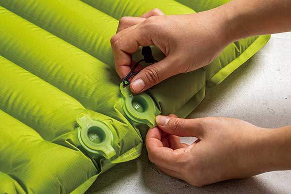 * 에어매트 돋보기! 에어매트 공기 주입구를 살펴보자. 모든 에어매트 제품의 공기 주입구는 이중으로 조작할 수 있도록 설계되어 있다. 뚜껑이 두 겹이거나, 구멍이 따로 두 개 있거나 나사형의 경우 두 단계로 돌아간다.
