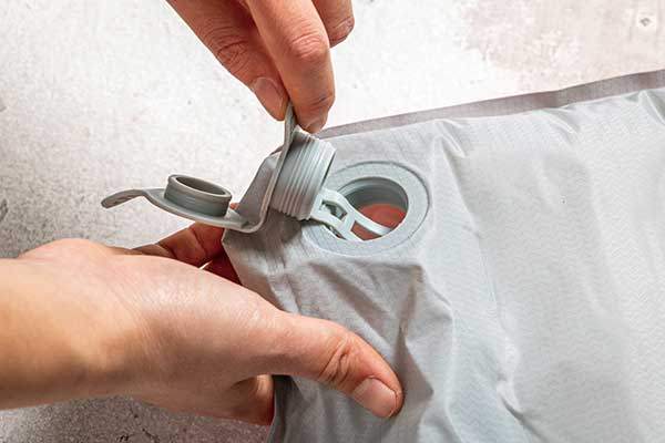 5. 매트가 빵빵해지면 주입구 뚜껑을 닫는다.