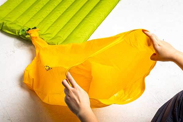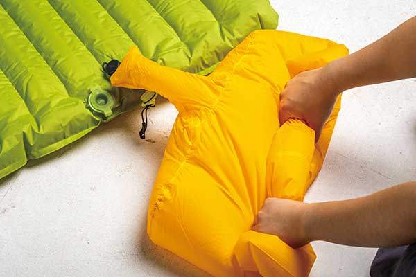 침낭 안에 넣고 사용하므로 자다가 매트 밖으로 굴러떨어질 일이 없다.