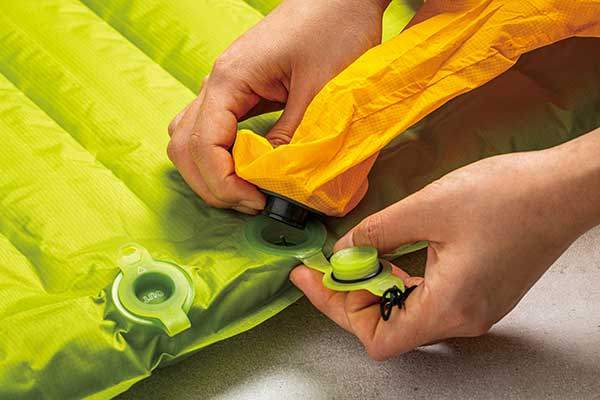 에어매트에 바람을 넣는 방법은 크게 두 가지다. 매트 구매 시 함께 제공되는 펌프 색을 이용하거나 자동 공기 주입기를 별도로 구매하는 방법이다. 아래는 펌프 색을 이용해 에어매트에 바람을 넣는 방법이다.