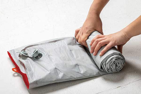 5. 수납 주머니에 잘 접은 매트리스를 넣는다.
