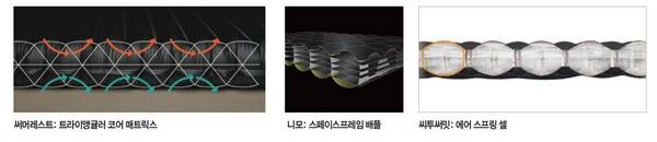 공기 격실(Baffle) 구조인 에어 매트는 속안이 공기로만 찬 풍선 같은 구조가 아니다. 내부가 수많은 격벽으로 나뉘어 있어 공기의 대류 현상을 억제해 열 손실을 줄인다.