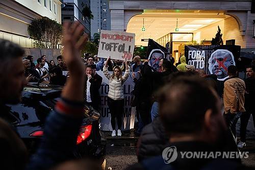 epa12672959 People hold signs during a protest organized by the Free Brazil Movement (MBL) against Banco Master following recent fraud allegations published in the press, in front of the bank's headquarters in Sao Paulo, Brazil, 22 January 2026. The bank was recently liquidated and the area has been fenced off. EPA/Isaac Fontana