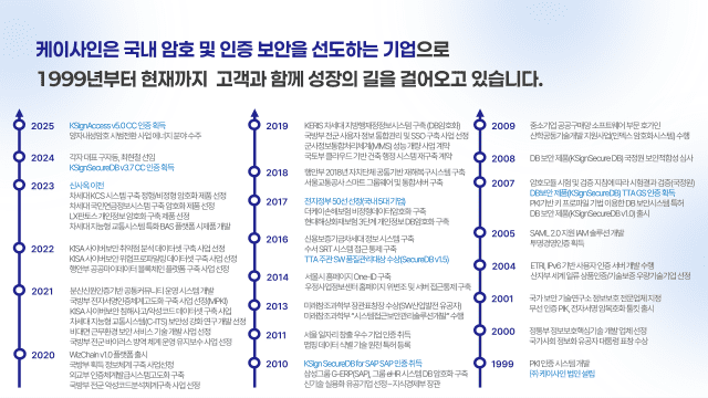 케이사인은 작년 한해도 작지 않은 성과를 거뒀다. 구 대표는 "2025년은 차세대 암호 기술과 AI 보안 영역에서 의미 있는 성과를 거둔 한 해였다"면서 "양자내성암호(PQC) 관련 솔루션을 고도화하고, 국내외 파트너십을 통해 기술 경쟁력을 강화했으며, 공공·금융 분야에서 주요 사업 성과를 지속적으로 창출했다"고 회고했다.