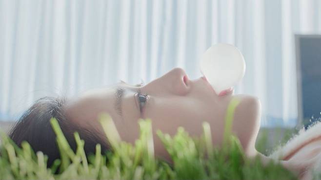 공개된 영상 속 안유진은 방 안에서 나른한 일상을 보내는 모습으로 시작됐다. 푸른 잔디 매트에 누워 풍선껌을 불거나, 햇살이 가득 비치는 방 안에서 하얀 니트 차림으로 여유를 만끽하는 모습은 한 편의 청춘 영화를 연상케 했다. 특히, 파란 담요 위에서 카메라를 응시하는 맑고 깊은 눈빛과 청초한 비주얼은 안유진 특유의 몽환적인 분위기를 자아내며 보는 이들을 매료시켰다.