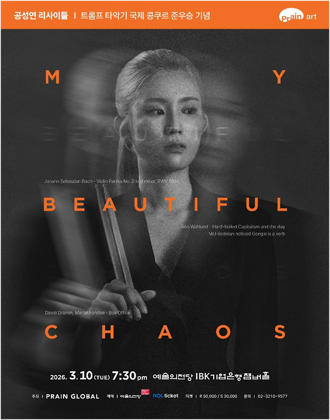 단순히 고전과 현대를 나열하는 방식이 아니라, 서로 다른 음악 언어가 하나의 흐름으로 이어지도록 설계한 것이 특징이다. 공성연은 어려운 설명 대신 연주 자체로 관객을 설득하며, ‘My Beautiful Chaos’라는 제목처럼 혼란 속에서도 분명한 방향을 만들어내는 자신만의 무대를 선보일 예정이다.