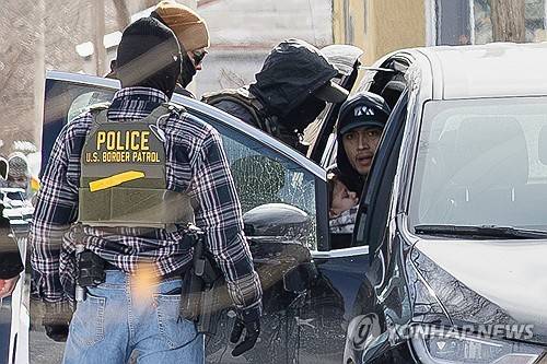Federal immigration agents detain a man and his daughter while blocking the alley outside their home on Thursday, Jan. 22, 2026, in Minneapolis. (Ellen Schmidt/MinnPost via AP) AP PROVIDES ACCESS TO THIS THIRD PARTY PHOTO SOLELY TO ILLUSTRATE NEWS REPORTING OR COMMENTARY ON FACTS DEPICTED IN IMAGE; MUST BE USED WITHIN 14 DAYS FROM TRANSMISSION; NO ARCHIVING; NO LICENSING; MANDATORY CREDIT