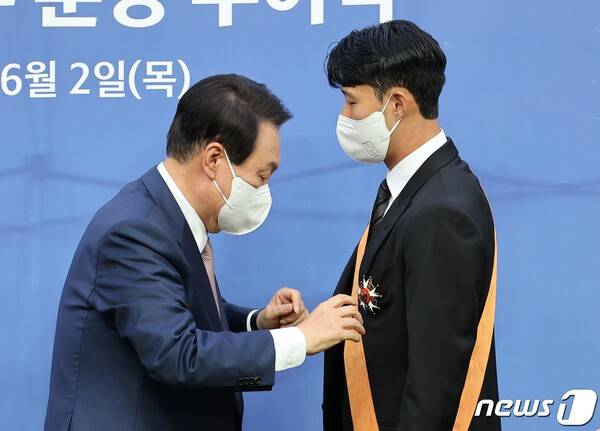 실제로 손흥민은 지난 2022년 브라질과의 친선경기를 앞두고 서울월드컵경기장에서 윤석열 전 대통령으로부터 청룡장을 수상한 바 있다.