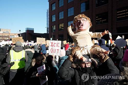 People protest against Federal immigration agents on Friday, Jan. 23, 2026, in Minneapolis. (AP Photo/Angelina Katsanis)