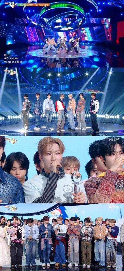 알파드라이브원(리오, 준서, 아르노, 건우, 상원, 씬롱, 안신, 상현)은 지난 23일 오후 방송된 KBS2 '뮤직뱅크'에서 미니 1집이자 데뷔 앨범 'EUPHORIA'(유포리아)의 타이틀곡 'FREAK ALARM'(프릭 알람)으로 1위 트로피를 거머쥐었다.