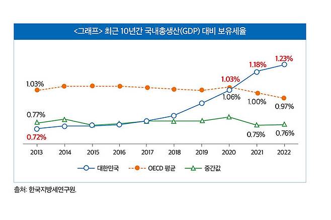 2018년부터 GDP 대비 보유세율이 급등했고, 2021년을 기점으로 OECD 평균을 넘어섰는데 이유가 무엇인가.