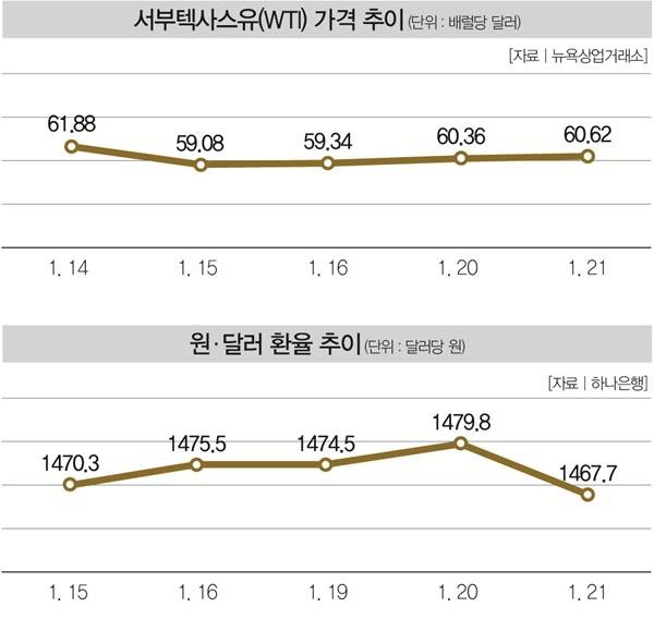 #환율 = 한국 정부와 미국 정부의 구두 개입에도 계속해서 오름세를 기록했던 원·달러 환율은 이재명 대통령의 발언으로 진정세를 보였다. 이 대통령은 21일 열린 신년 기자회견에서 "정부가 할 수 있는 정책을 시행하고 있다"며 "당국에 따르면 한두달 정도면 1400원 전후로 떨어질 것으로 예측하고 있다"고 밝혔다.