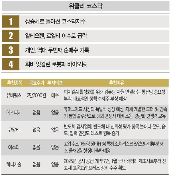코스피 상승세에 코스닥지수도 오름세를 타고 있다. 1월 넷째주(19~23일) 코스닥지수는 968.36에서 993.93으로 상승했다. '천스닥'까지 6.03포인트 남았다. 코스닥지수가 1000을 넘어서면 2022년 1월 5일(1009.62) 이후 4년 만이다. 전망은 나쁘지 않다. '오천피' '천스닥' 돌파를 앞두고 외국인 투자자의 매수세가 살아나고 있다.