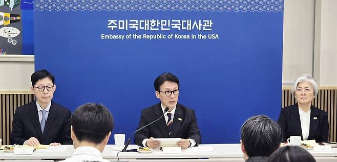 반갑다. 바로 본론에 들어가겠다. 관심 있을 밴스 부통령과의 회담 결과부터 미국 방문에 대한 성과까지 말씀드리겠다. 밴스 부통령과의 회담은 예정됐던 40분부터 길어진 50분 정도 진행. 자리 했던 대사(강경화 대사)나 차관(박윤주 외교부 1차관)이 잘된 회담이었다고 평가했다. 그 말씀이 단순히 외교적 수사가 아니고 진심이기를 바란다. 비교적 할 말을 하고 상대로부터도 들었으면 좋을 이야기를 들은 것 아닌가 한다.