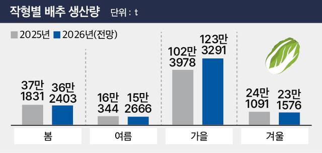 봄·여름·겨울배추 2~4% 감소