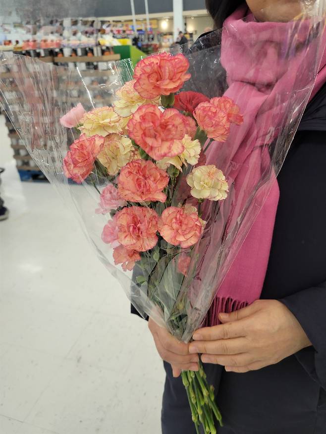 | ▲ 아들을 낳아준 아내에 대한 고마움과 아들을 향한 사랑을 담아 산책길에 구입한 카네이션 꽃다발 |